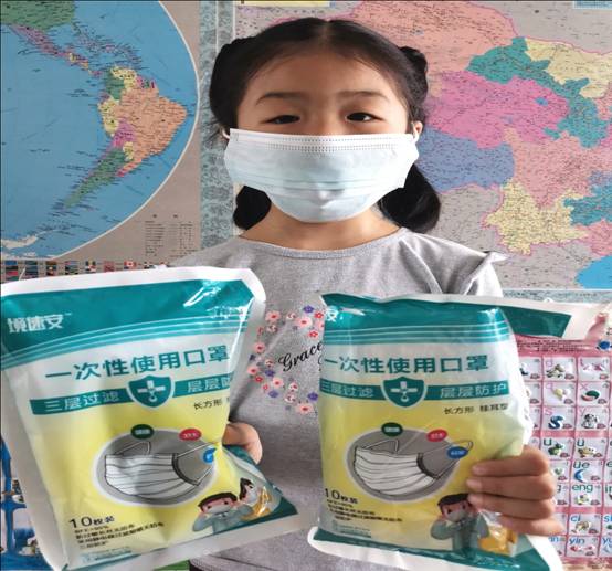 图:校工会主席杨庆庆发放儿童口罩