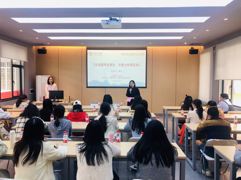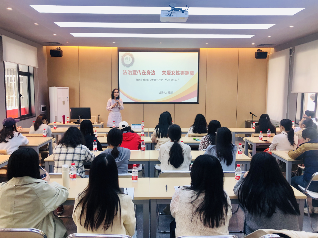 3月27日,由校工会主办,党委统战部、管理工程学院党总支协办的“法治宣传在身边 关爱女性零距离”女教职工普法专题讲座在“一站式”学生社区辅导员工作室召开,校工会常务副主席廖莎主持讲座,60余名女教职工聆听了讲座。