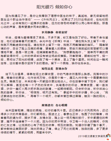在全国人民众志成城抗击疫情的关键时期,我校充分发挥“第二课堂”的育人作用,将“学”与“项”搬到“云”上,及时创新“第二课堂”活动载体,使得学生在疫情期间“停课不停团建”,科学防疫“不停摆”,团日活动“不含糊”,青年学习“不断线”,为坚决打赢疫情防控阻击战贡献了青春力量。