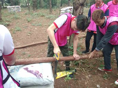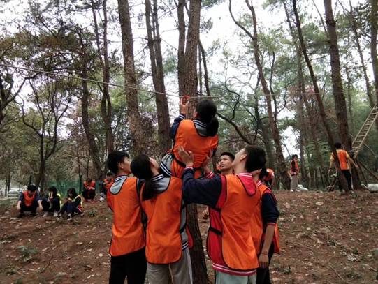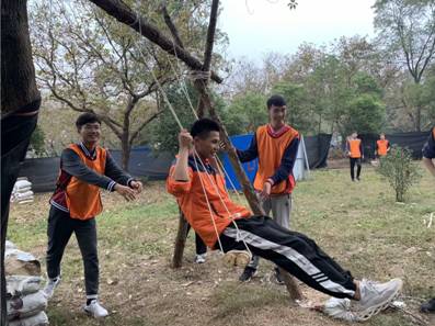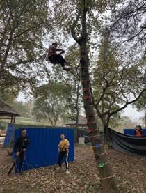 学员们分别进行了自制秋千、搭建桥梁、林中飞跃、攀岩爬树。