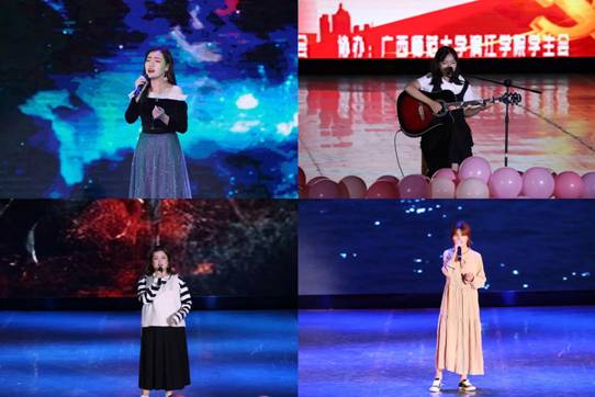 在“逐梦.同心”与“圆梦.未来”篇章中,校艺术团礼仪队《因漓启航》的走秀表演把晚会推向高潮,赢得了现场观众的阵阵掌声与喝彩。让我们感受到了礼仪之美,从16.17.18.19级漓江学院标志的校服体现“因漓起航”。搞笑、有趣的相声引得观众欢笑一堂,古风舞蹈带给我们不一样的感受,优美的身姿曼妙的舞姿,美就一个字。