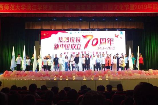 10月18日晚,由学生事务部、校团委主办,校学生会承办的第十三届“漓苑星空”校园文化节暨2019年迎新晚会在弘善讲堂举行。学生事务部部长蒋远宏、学生事务部副部长、校团委书记王瑞、校团委全体教师及各二级学院团总支书记、副书记代表以及2019级新生近500余人观看了此次晚会。