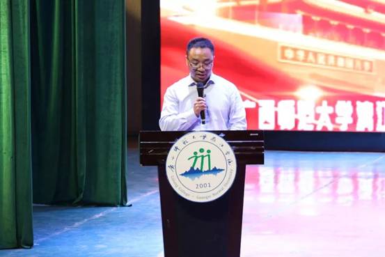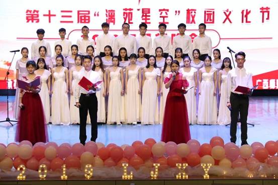 学生事务部部长蒋远宏为晚会致辞,他表示我校以开展第十三届“漓苑星空”校园文化品牌活动工作为契机,弘扬学校“至善”精神,增强广大师生“爱校、护校、荣校”意识,鼓励学生传承各种文创产品、个性化发展,营造绚丽多彩的校园文化,勇做正能量的传播者。