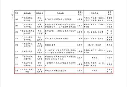 在本次第九届 “挑战杯”广西大学生课外学术科技作品竞赛中,我校荣获二等奖一项、三等奖五项。
