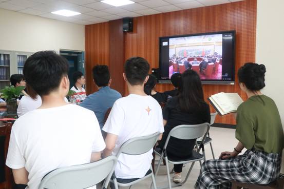 与会人员首先观看视频,学习习近平总书记在中共中央政治局第十四次集体学习的重要讲话视频,习近平总书记强调要引导广大青年学习五四精神及在五四精神的激励下为全面建成小康社会、夺取新时代中国特色社会主义得伟大胜利、实现中华民族伟大复兴的中国梦而不懈奋斗。