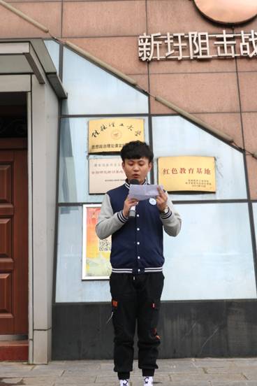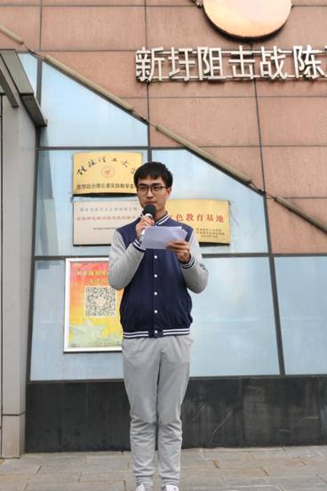 现场教学后,学生事务部副部长、校团委书记王瑞在讲话中表示,我们站在这里开展特别主题团日活动现场教学,缅怀先烈,是为了更好铭记先烈牺牲小我,顾全大局的崇高精神,是为了更好铭记先烈为国家独立、民族解放所付出的巨大牺牲,是为了更好激励当代青年积极投身国家建设当中。今年恰逢五四运动一百周年,我们更要以先辈为榜样,让先辈的英勇事迹引领我们,牢记习近平总书记对青年的殷切期望,为国家的发展贡献青春才智。