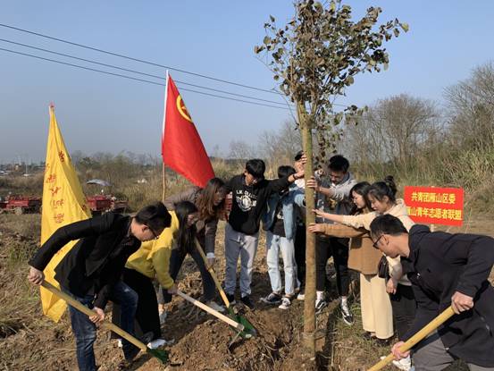 共青团雁山区委书记黄贤斌、校团委书记王瑞等参加义务植树活动