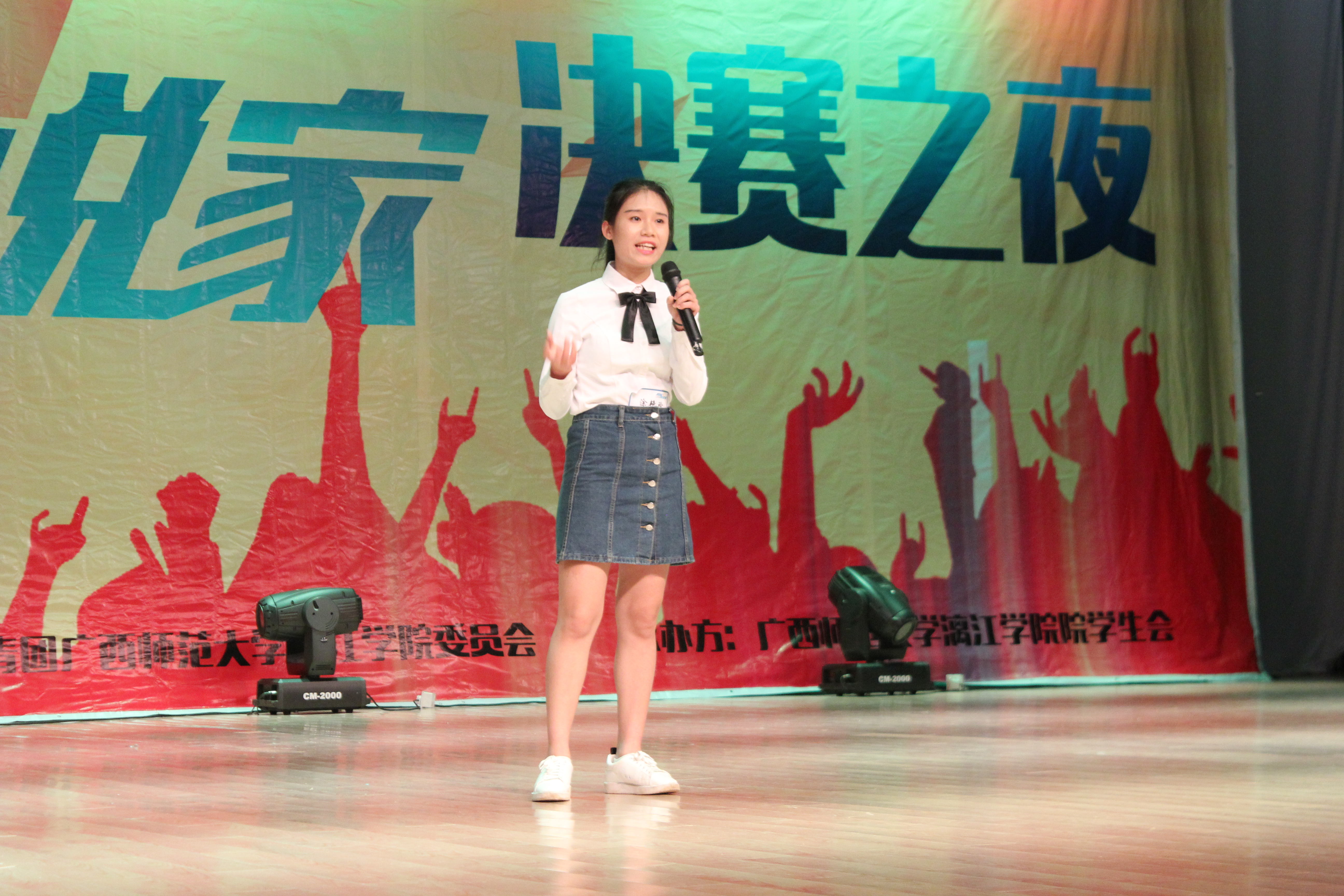 本场比赛精彩纷呈,风格迥异的十二位选手用真诚的话语演说不一样的人生。第一轮战队PK赛中,虞崇乐同学《我没有什么不同》讲述自己的亲身经历,让我们看到一位身残志坚的追梦少年,为了生活和梦想,证明自己,努力前行;王学同学《规划你的大学》讲述大学生活应有规划和目标,不是迷茫度日,引发了我们深深的共鸣。第二轮总决赛的主题围绕“自己与学校”的故事进行演说。《感恩漓院》、《大学的教师论》、《校园是什么》等一些演说主题展现了当代大学生的学习观、求知观,独特的话语引起了现场观众对现实对未来生活的思考。老师们的犀利点评,大众评审的公开投票,将比赛推向另一个高潮。最终,来自艺术与设计系的涂艳玲同学摘得第二届校园演说家的桂冠,音乐与教育系的郑鹏威同学获得亚军,经济政法系的骆慧蓉同学获得季军。