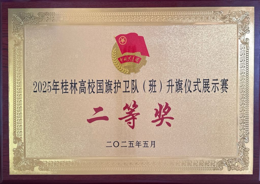 图:我校国旗护卫队获2025年桂林高校国旗护卫队(班)升旗仪式展示赛二等奖