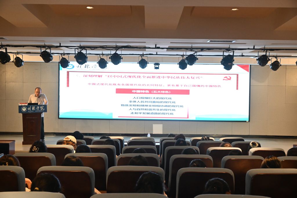 随后,周杰教授以“青春为中国式现代化挺膺担当”为主题,结合党的二十大精神,从八个“深刻理解”生动阐述了青年在新时代的担当与作为。他强调,青年学生要争做新时代青年马克思主义者,必须坚定理想信念毫不动摇,加强理论武装毫不松懈,积极投身实践毫不退缩,牢记初心使命始终如一。