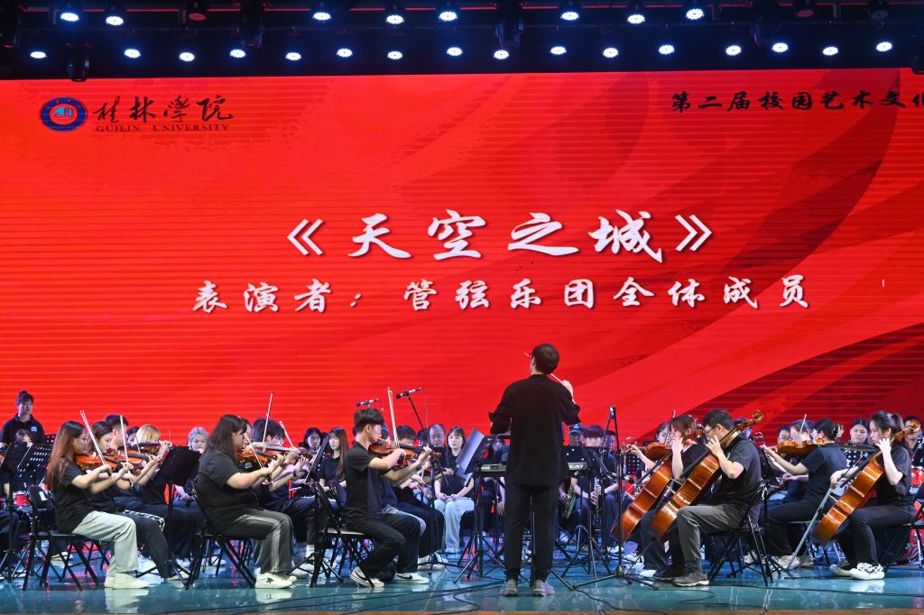 本次活动共分为两个部分:第二届校园艺术文化节总结表彰和至善管弦乐团汇报展演。在表彰仪式上,校团委主要负责人、教育学院院长分别为第二届校园艺术文化节中表现突出的集体和个人颁发了“优秀组织奖”“先进工作者”奖项。随后,至善管弦乐团以一曲《天空之城》开启了演出的序幕,耳熟能详的音律瞬间将观众们带入了音乐殿堂。电声乐队表演的《太阳》《日不落》充分展现了青年学子的活力与朝气;萨克斯重奏《青春修炼手册》节奏欢快、旋律优美;最后,整场活动在至善管弦乐团演奏的《千与千寻》中落下帷幕。