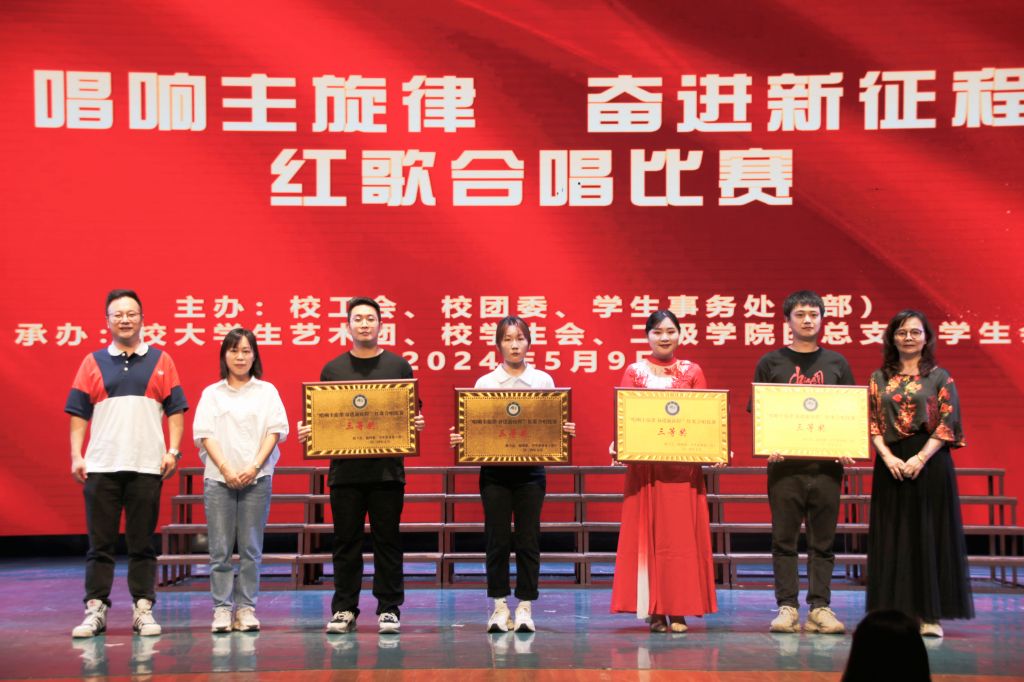 5月9日,学校在弘善讲堂举办“唱响主旋律 奋进新征程”红歌合唱比赛。校党委书记、政府督导专员唐文红,校党委委员、副校长蒋毅出席本次活动。党委工作部、学生事务处(部)、校团委相关负责人,各二级学院党政负责人、团总支书记、副书记及师生代表共500余人参加本次活动。