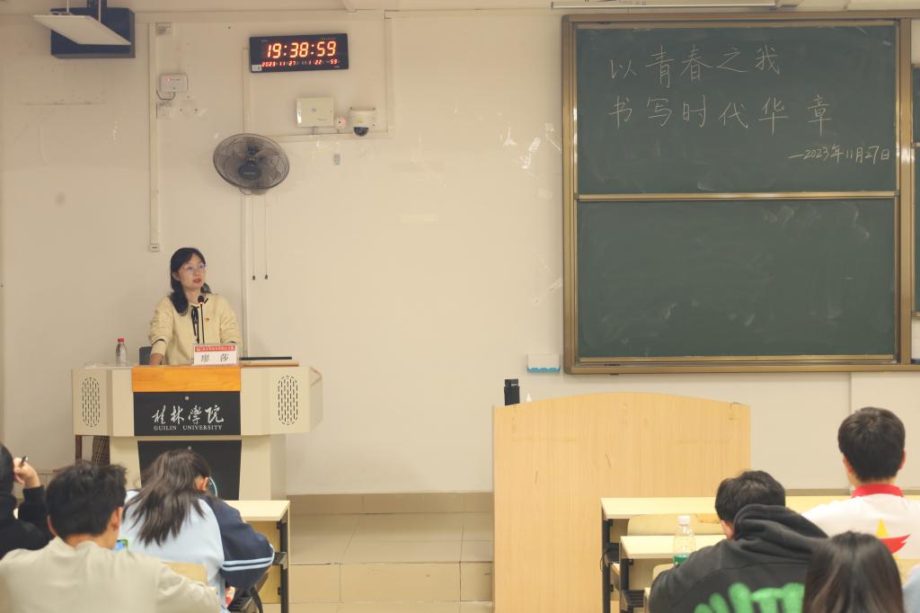为了加强青年思想政治教育,深化理论学习引领,体悟党的二十大报告精神以及中国式现代化理论的指导和行动,11月27日校团委在至善楼1307教室组织开展校级第九期“青马班”专题讲座(第四讲)。本次讲座邀请到学校党委工作部部长、校工会常务副主席廖莎老师担任主讲。