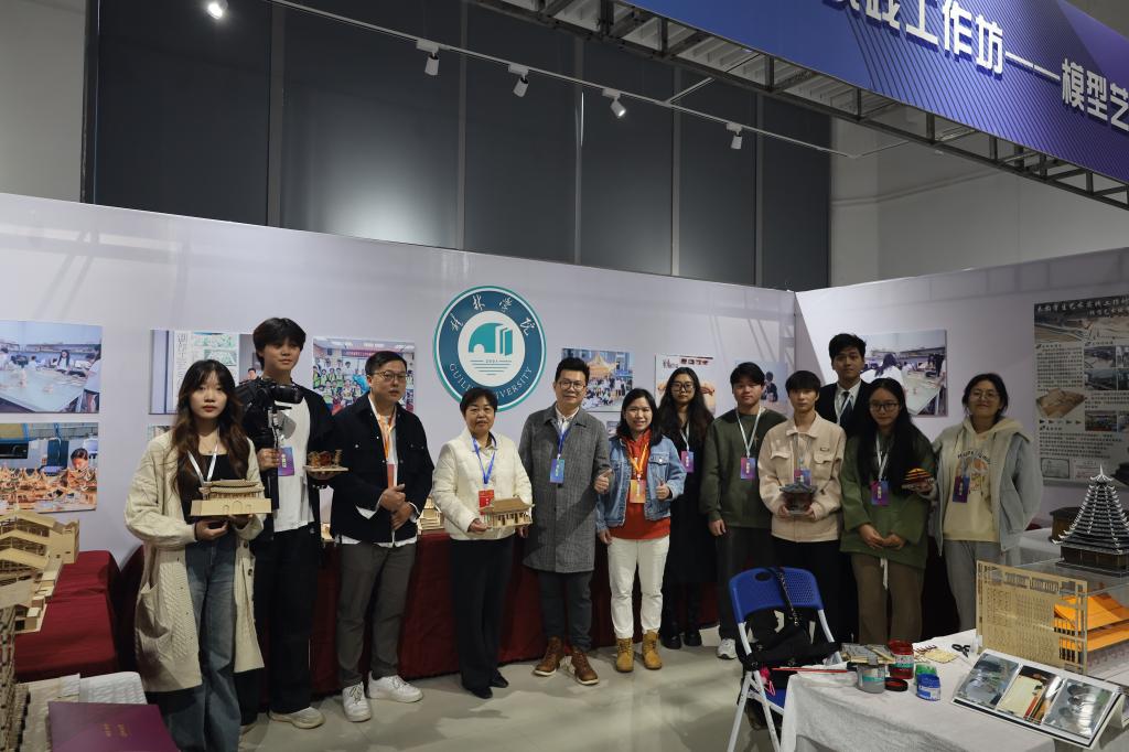 何玲对我校学子在开幕式上的精彩展示表示肯定,充分展现了桂院学子的青春活力。随后参观了在广西师范大学举办的大学生艺术实践工作坊展览,全区共有16个工作坊入围现场展示,我校王瑞、卢春辰、刘鹏三位老师指导的“木构学生艺术实践工作坊——模型艺术赋能美丽乡村”工作坊参加现场展示。