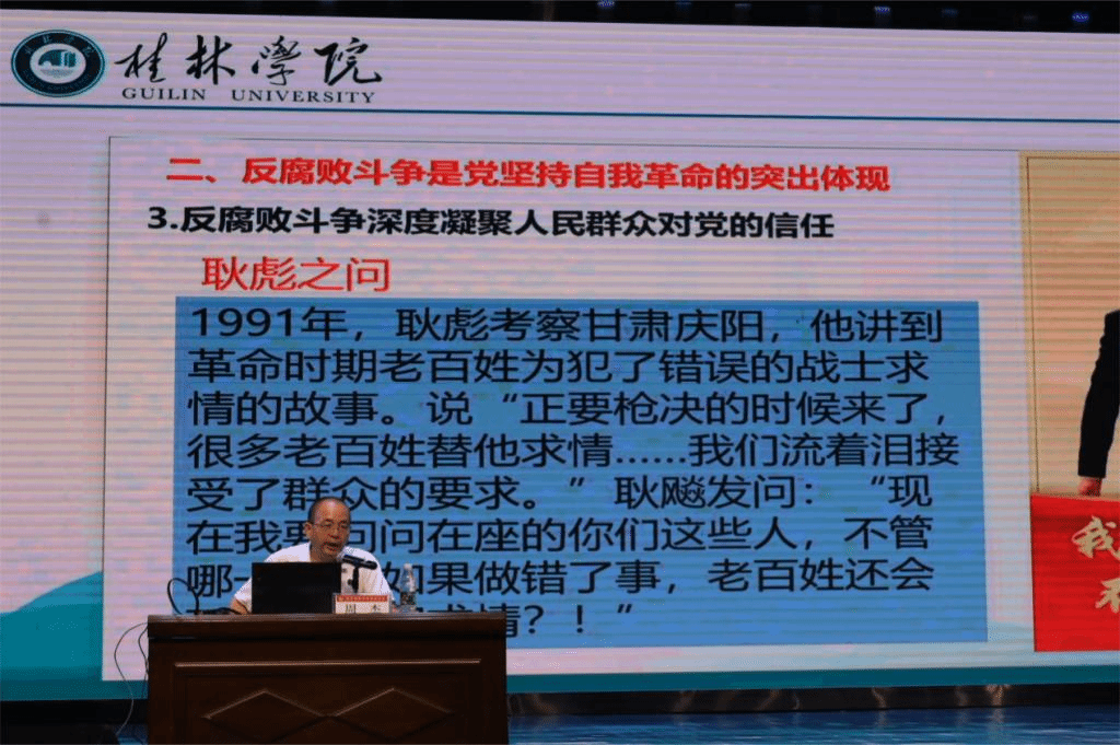 本次课程围绕紧紧围绕坚持自我革命是党百年奋斗的历史经验、反腐斗争是党坚持自我革命的突出体现、立足新时代,领悟第二个答案的重大意义这三个方面展开,周教授以实例和数据从深处剖析了党为什么能够在近代中国各种政治力量的反复较量中脱颖而出?为什么能够始终走在时代前列,成为中国人民和中华民族的主心骨等重大问题。同学们正处于人生中最宝贵的黄金时期,周教授勉励同学们一定要坚定对马克思主义的信仰,坚定中国特色社会主义信念,要把学习作为首要任务、精神追求和生活方式,既向书本学,也向实践学,千方百计提高本领,不做时代奋进列车上的“迟到者”。