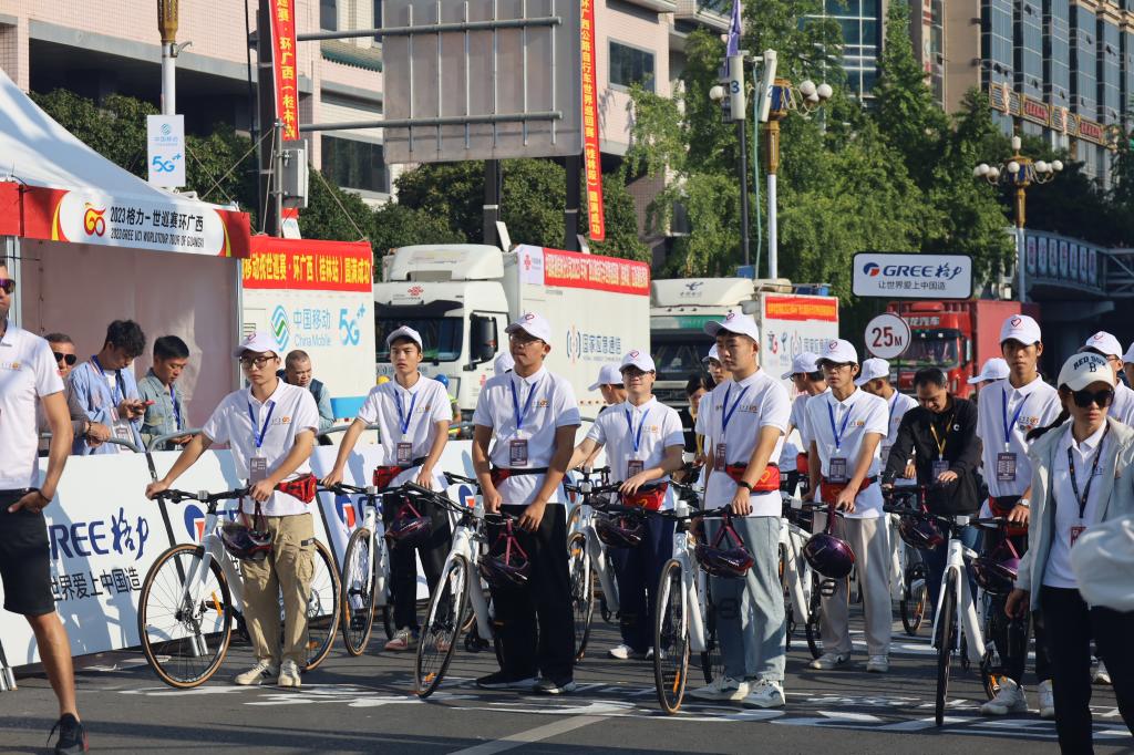 2023年环广西公路自行车世界巡回赛10月17日在“山水甲天下”的桂林收官,在本次赛事(桂林段)中,我校共派出391名学生志愿者助力本次赛事的顺利开展。其中10月15日至18日,102名志愿者前往市区桂林漓江大瀑布饭店、桂林市中心广场、桂林两江国际机场等地协助组委会做好相关会务工作;10月17日,89名志愿者在市区部分点位协助做好安保工作、200名志愿者在雁山段协助做好道路交通管制工作。