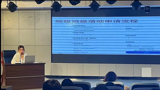 本次培训会由第二课堂综合素质认证中心技术部谢镕璟同学主讲,谢镕璟同学分别从实施第二课堂成绩单的目的和意义、各类校/院级活动申请流程、到梦空间APP的使用、部落申请和管理等内容进行详细的介绍。在培训会中,与会人员也在答疑环节积极提出问题并得到了主讲人的解答,通过现场进行填写第二课堂成绩单知识问卷的方式,进一步帮助与会人员巩固在培训会上所学的知识。