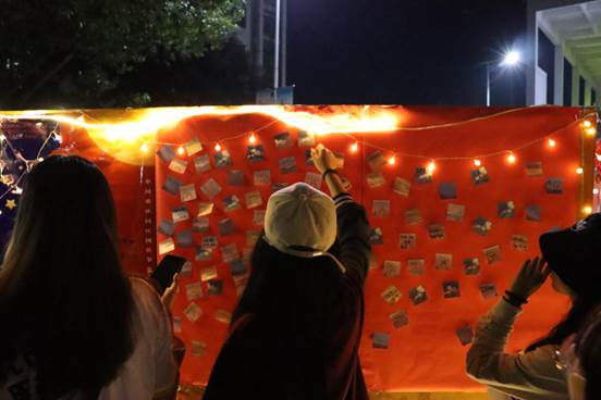 在本次活动中,设立猜灯谜活动,猜对灯谜,赢得奖券,同时普及中秋知识,简短幽默的小问题和同学们机智灵敏的回答让欢声笑语充满整个活动。领取便签写上心愿和祝福,并且兑换月饼、明信片、灯笼等奖品,在欢声笑语之中,让同学们同时感受到中华传统文化的独特魅力,最后同学们把便签贴上心愿墙,自己的美好心愿以及对祖国的真诚祝福!