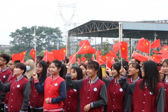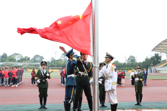 伴随着庄严雄壮的中华人民共和国国歌,五星红旗冉冉升起,迎风飘扬。全体师生向国旗行注目礼,高唱国歌,满怀对祖国无限的热爱和崇高的敬意。五星红旗激发了我们内心深处对祖国爱的共鸣,激发了漓院学生的爱国之心、报国之行。