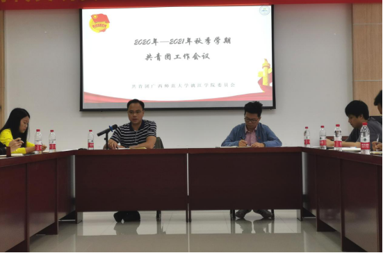 校团委书记王瑞传达了9月22日广西高校团委书记工作会议的讲话精神并对我校近期共青团工作做出总结。他强调全体团学干部要认真思考,悉心领会会议讲话精神,按照共青团中央、广西区委要求推动我校共青团改革,做好工作方案,突出改革亮点,从而促进我校共青团工作更好开展;要加强学生干部队伍建设,规范社团组织管理,将思想建设引领与日常活动有利结合起来。