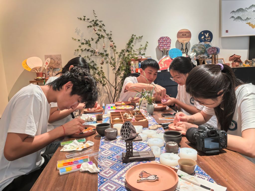“承光”实践团在这里开启了一段“非遗”实践之路。成员体验了手捏陶艺和壮锦DIY的“非遗”手工艺品的制作。工作人员详细介绍了陶土的选取、处理以及制作过程:晾晒、粉碎、浸泡、揉搓等多道工序,每一步骤都体现了自然与匠人之间的相辅相成。在塑形环节,团队成员运用按压、捏塑等手法及模具辅助,将泥土塑造成各种形态,如憨态可掬的动物摆件和古朴典雅的花朵饰品,难能可贵的是,他们大胆创新,积极将现代设计理念融入传统陶艺制作,打造出既保留传统韵味又兼具时代气息的陶艺作品。这种创新尝试展现了团队成员对传统文化的尊重与传承,以及对创新思维的灵活运用和积极探索。