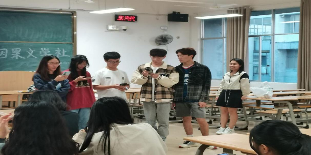 游戏结束以后,会长对此次活动作出总结:通过本次活动让各位新老成员之间进行了相互的熟悉,为社团的发展提供了新的力量,希望在未来的日子里,因果文学社可以继续秉持“以文会友,以文正己”的口号努力前进。