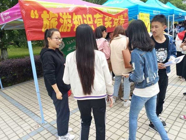 为了让同学们更好的放松身心和增长阅历,广西师范大学漓江学院大学生社团联合会旅游协会于2018年4月16日、4月17日在食堂小广场进行了关于普及旅游文化知识的活动。