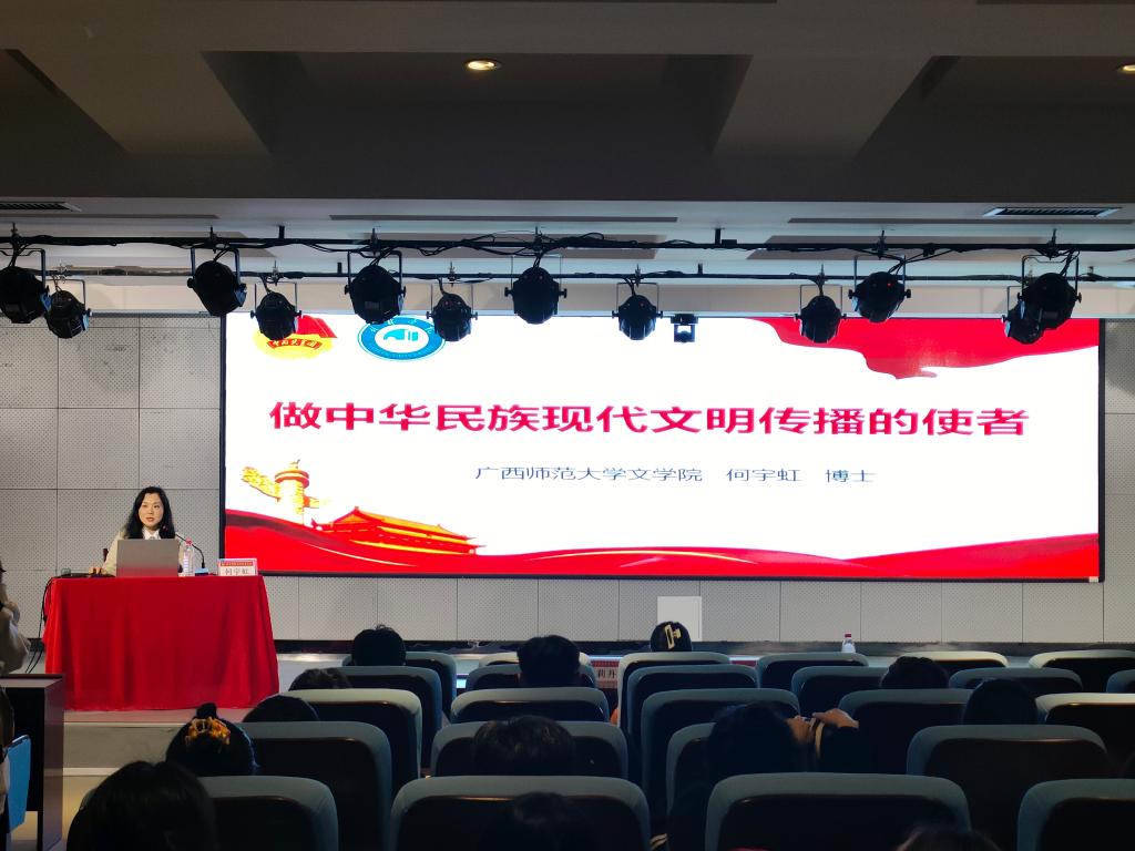 12月8日晚,为了进一步增强青年马克思主义者培养工程的实效性,培养“青马班”学员自觉成为中华民族现代文明传播的使者,校团委在至善讲堂组织开展第九期校级“青马班”专题讲座(第五讲)。本次讲座邀请到广西师范大学文学院教师何宇虹博士担任主讲。何...
