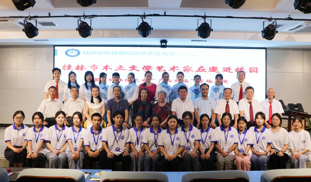 为提升学生艺术素质、艺术审美和人文素养,激发学生对艺术的兴趣爱好,营造高雅校园艺术氛围,不断推进我校艺术教育工作,为师生搭建感受魅力民俗文化的平台,6月14日,学校邀请了国家级非遗艺术“广西文场”表演艺术家进校开展专场演出,校长杨树喆,校党委副书记、纪委书记、副校长邓志平,桂林市文联党组书记、主席何绍连以及国家级非物质文化遗产“广西文场”国家级代表性传承人何红玉、国家级非物质文化遗产“桂剧”国家级代表性传承人、国家一级演员罗桂霞等参加了活动。