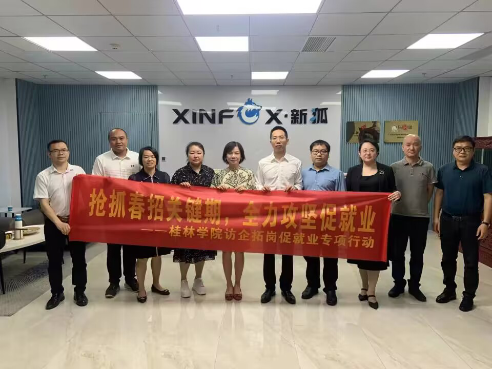 为进一步贯彻落实党中央、国务院关于“稳就业”“促就业”决策部署,执行教育部“高校书记校长访企拓岗促就业”专项行动,落实广西普通高校毕业生就业百日攻坚行动,6月16日上午,学校副校长祝芸芸率队赴新狐数字科技开展访企拓岗活动。新狐数字科技副总经理韦健、数字化专委会秘书长邓正明及新狐数字科技相关负责人参加了本次走访、调研活动。管理工程学院主要负责人陪同走访。