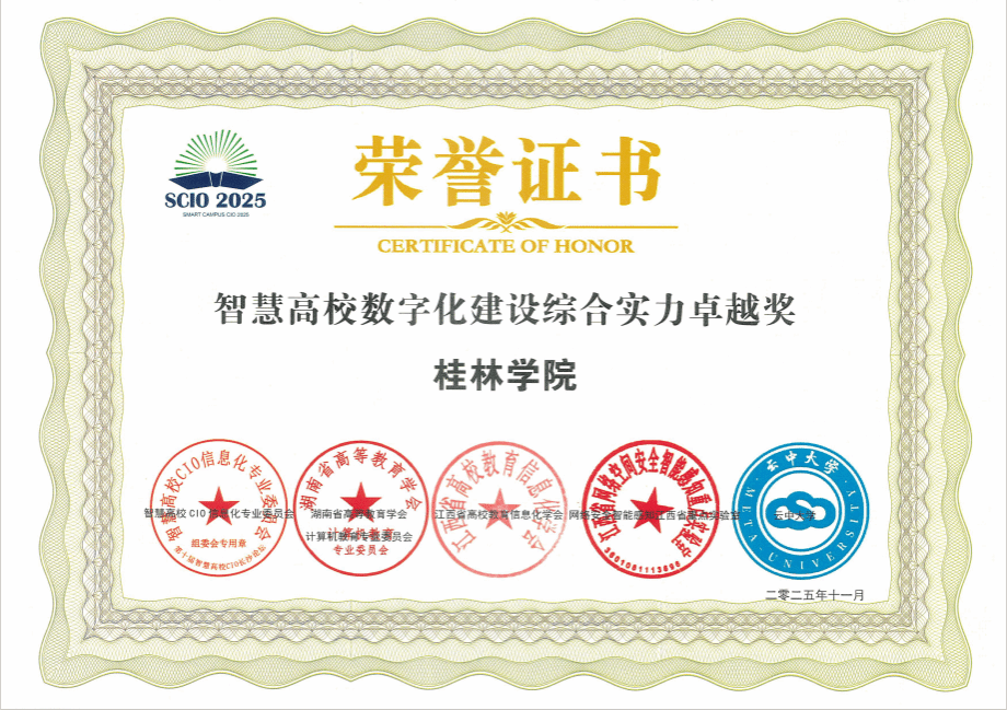 此次获奖是对学校数字化建设成果的一次重要检验,更是未来发展的强劲动力。学校将以此为契机,深入学习借鉴兄弟高校的先进经验,持续深化信息技术与教育教学、管理服务的深度融合,不断完善智慧校园建设布局,着力提升数字化治理能力与人才培养质量,为推动高等教育数字化转型贡献桂院力量。