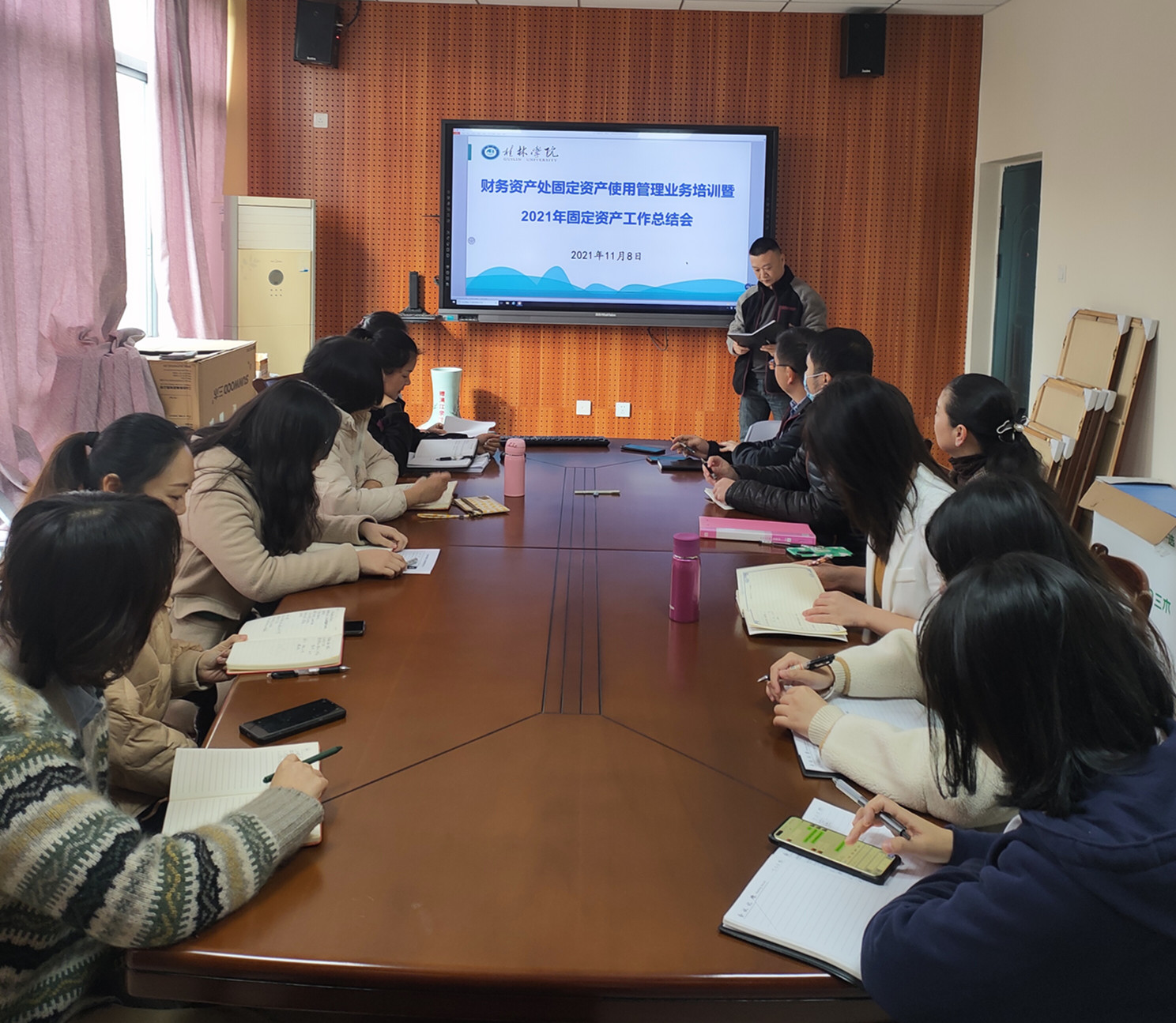 会上,处长沈云组织学习了2020年新修订的原《广西师范大学漓江学院固定资产管理办法》,副处长陈雪萍就管理办法中修改和完善的部分进行了解释说明,资产干事宋晓飞就2021年本部门在固定资产管理和使用当中存在的问题以及固定资产管理系统的操作进行了培训,部门固定资产管理员谢璇就2021年本部门固定资产管理使用情况做了简要的汇报。