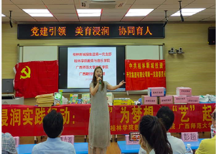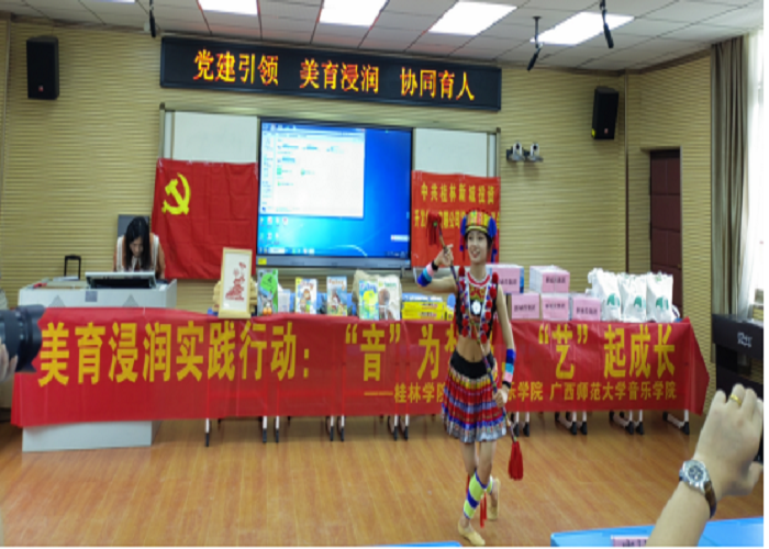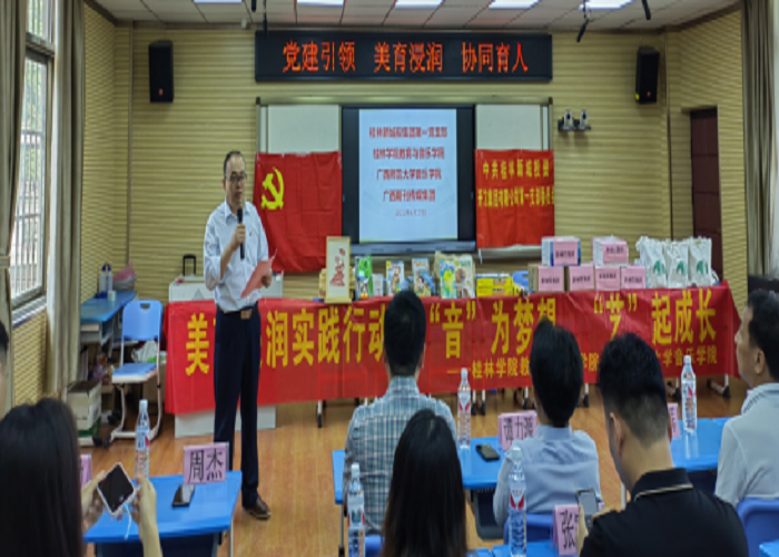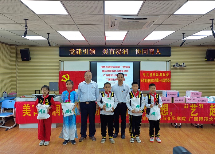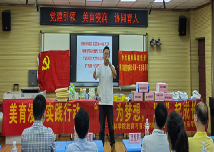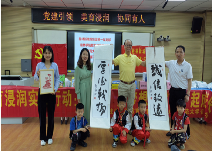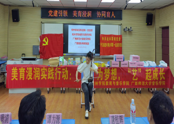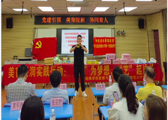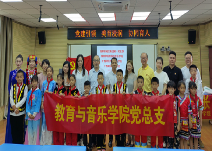 4月27日,教育与音乐学院党总支组织部分师生党员来到桂林市草坪回族希望小学开展了一场以“党建引领 美育浸润 协同育人”为主题、别开生面的党日活动。此次党日活动联合了桂林新城投资集团第一党支部、雁山区教育局、广西期刊传媒集团、广西师范大学音乐学院党委联合开展,活动受到了草坪回族希望小学师生的热烈欢迎。