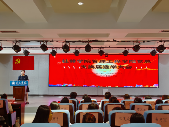 10月18日下午,中共桂林学院管理工程学院总支部委员会在至善讲堂召开党总支换届选举大会,学院领导班子及全体师生党员共83名同志参加了会议,大会由辅导员谢鹃霞老师主持。