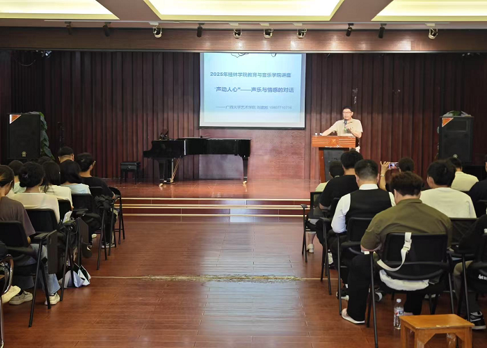 为进一步深化教师教学技能改革,全面提升教师教学能力与专业素养,促进美育教育与专业教学深度融合,着力打造一支兼具深厚专业功底与先进教育理念的高水平教师队伍,6月13日,教育与音乐学院特邀广西大学艺术学院声乐表演副教授、硕士研究生导师刘建刚莅临指导,成功举办了以“声与情的艺术融合”为主题的声乐教学磨课活动。学院副院长主持活动并致欢迎辞,党总支书记、主持工作副院长及学院专业教师和部分学生到场聆听。