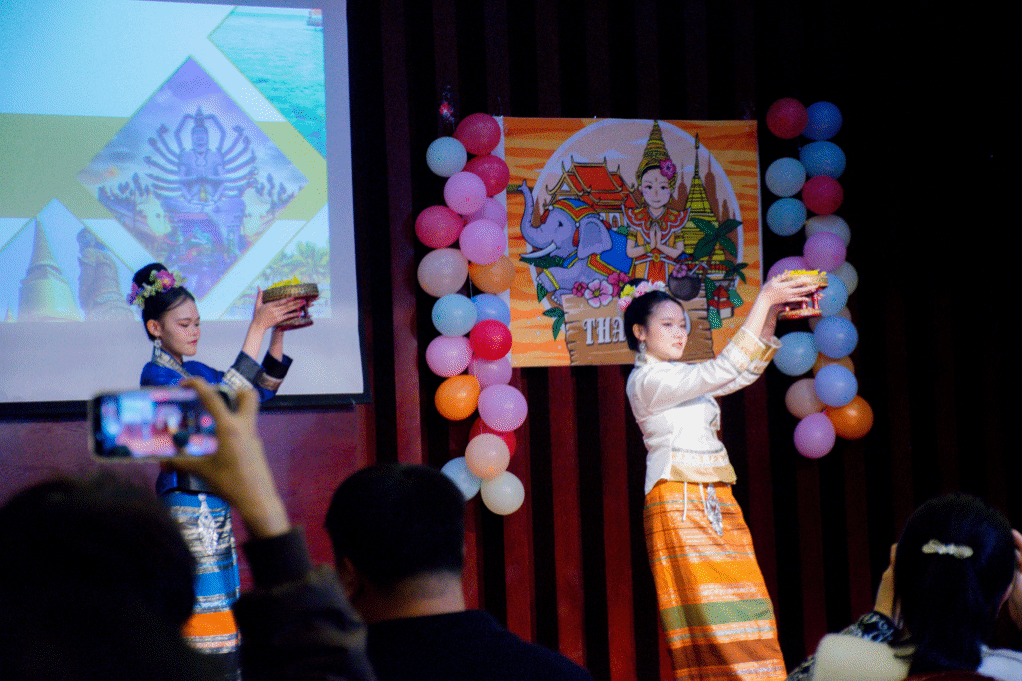 文艺展演环节精彩纷呈,将现场气氛推向一个又一个高潮。外国语学院2025级泰语专业学生带来的中国古典舞《红昭愿》,舞姿曼妙、韵味悠长;2024级泰语专业学生献上的“傣迪”舞蹈,活力四射、热情洋溢,传递着对泰国友人的真挚欢迎。泰国留学生则以极具民族特色的传统舞蹈《祝福之水》回馈,舞姿舒展、寓意美好。中泰文化在舞台上交相辉映,每一个精彩瞬间都赢得全场阵阵掌声。