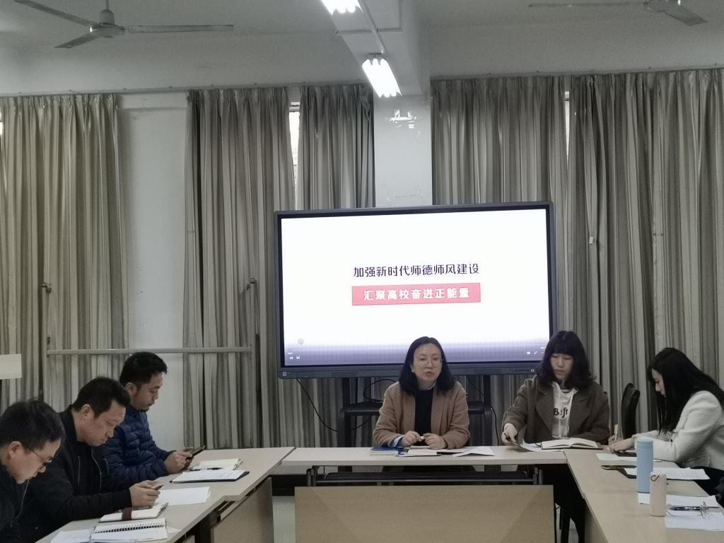 会上,全体与会教师集中观看《加强新时代师德师风建设,汇聚高校奋进正能量》主题教育片,教育片涵盖师德师风的重要地位、加强师德师风的内涵与要求、加强师德师风的途径与举措以及遵守新时代高校教师职业行为准则四个方面内容,倡议广大教师要坚持立德树人,以强烈的使命感和责任感传播思想智慧,传递核心价值,坚定学生理想信念,帮助学生树立正确的世界观、人生观和价值观。