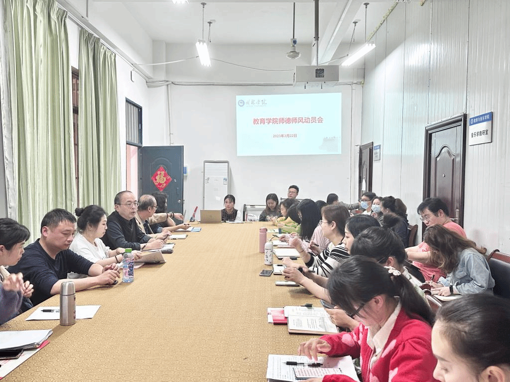 为迎接学校3.28师德师风建设主题活动日,进一步加强师德师风建设,引导广大教师争做四有好老师,3月22日,教育学院组织全体教职工召了师德师风动员会,本次会议由党总支书记周杰主持,全体教职工参加了会议。