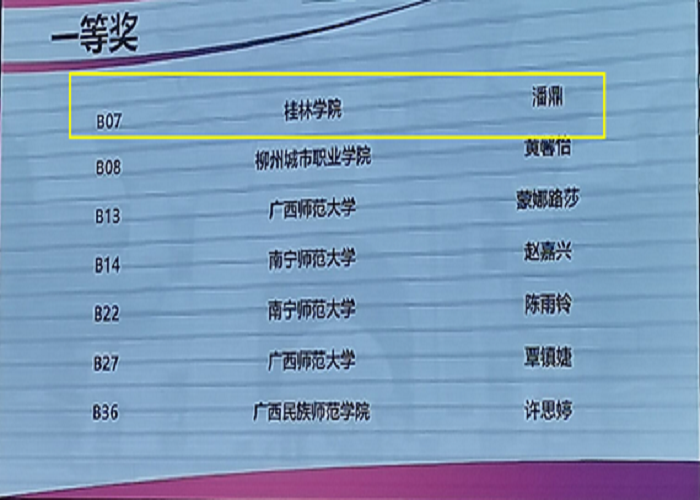 3月18日至19日,由自治区教育厅主办、广西师范大学承办的2022年全区师德师风演讲比赛在广西师范大学育才校区顺利举行,我校2021级音乐学专业潘鼎同学脱颖而出喜获一等奖(第一名),我校连续两年在该项赛事中取得第一名的佳绩。
