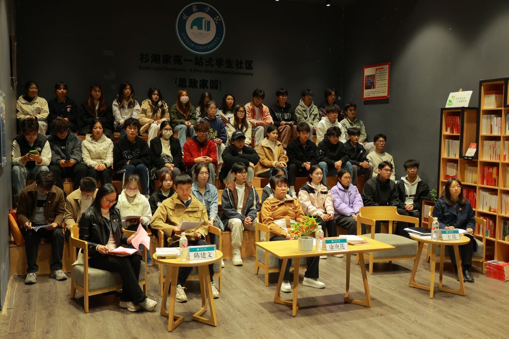 12月5日下午,我校在杉湖家苑“一站式”学生社区开展“思政大讲堂”活动。活动特邀校纪委书记康庚莲担任主讲嘉宾,校团委书记、纪委办公室主任、校团委师生代表、校级学生组织代表、“青马班”学员代表参加讲座。