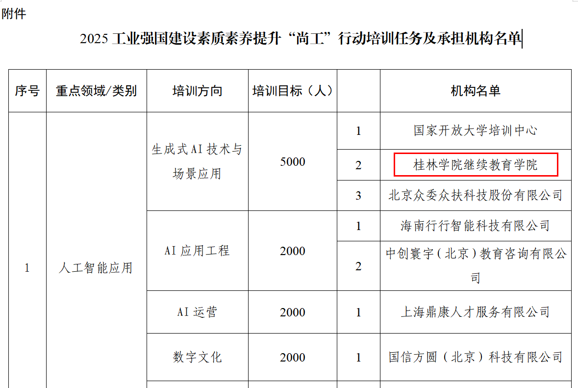 近日,工业和信息化部工业文化发展中心正式发布《2025工业强国建设素质素养提升“尚工”行动培训任务及承担机构的公告》,我校凭借突出的办学实力与培训经验,获准承担“生成式AI技术与场景应用”方向培训任务,由继续教育学院牵头组织实施。