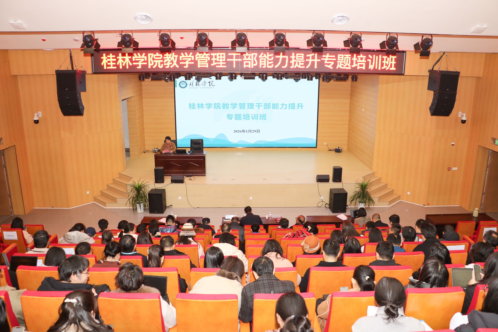 1月29日,学校教师教学发展中心按年度计划组织开展“教学管理干部能力提升专题培训班”,培训在学校二期图书馆报告厅举行,活动邀请了原浙江树人学院校长,现任浙江省民办教育协会监事会主席徐绪卿教授、苏州大学民办教育研究中心主任王一涛教授等专家进行讲学,学校校长吴郭泉、副校长杨庆庆、学校全体教学管理干部、各专业负责人、各教研室主任及学校高层次人才参加了本次培训。