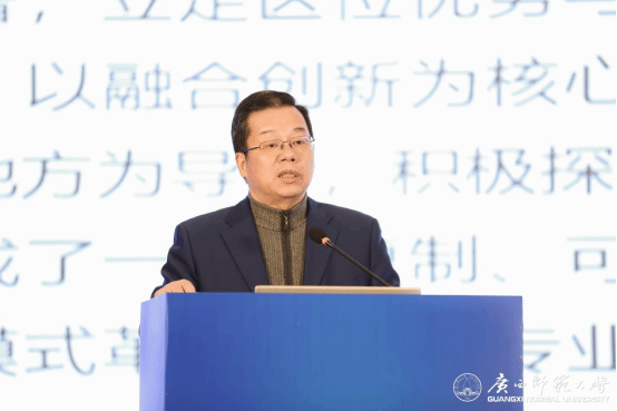 广西新文科教育研究中心主任、广西师范大学党委书记贺祖斌教授作主旨报告