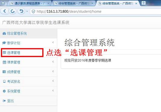 三、选课网址:http://116.1.3.71:800/dean/student/login;