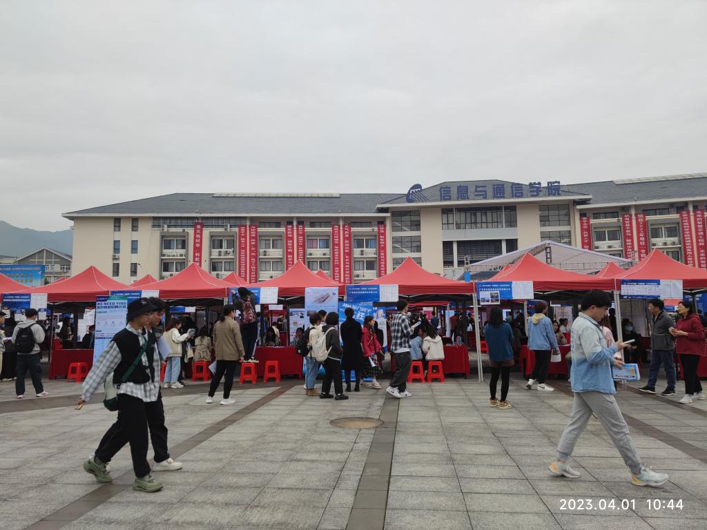 4月1日,由广东省工业和信息化厅、广东省人力资源和社会保障厅、广西壮族自治区教育厅联合主办,桂林电子科技大学承办的2023年粤桂“专精特新”企业校园招聘会在桂林电子科技大学花江校区举办。为深入贯彻落实“稳就业”“保就业”决策部署,进一步拓宽毕业生就业渠道,我校毕业生就业创业指导中心全体人员,各相关二级学院就业工作负责人及辅导员参加了此次招聘活动。