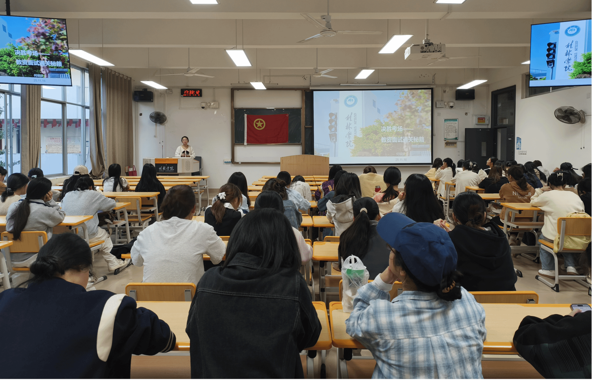 为帮助同学们从容应对教师资格考试面试,掌握应试技巧,提升专业素养,2025年11月16日,2023级学前教育专业班主任、专任教师何琪欣,在1316教室主持开展了以《决胜考场——教资面试通关秘籍》为主题的教资面试指导讲座。本次讲座围绕面试流程、答题策略、试讲要领与心理调适等方面展开,为即将参加面试的同学提供了系统实用的指导。