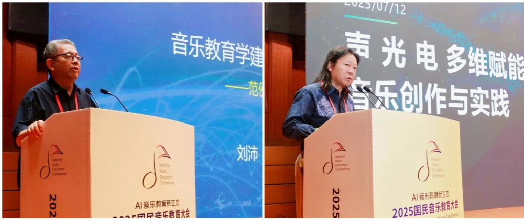 在为期两天的会议中,胡雅珂老师积极参与主会场及 15 个分会场的多场活动。7月12日开幕式主会场上,教育部相关领导与学界权威专家针对音乐教育行业的宏观发展趋势以及政策导向进行解读,深入剖析了当下音乐教育领域所面临的机遇与挑战,让大家对行业大环境有了更清晰的认知。武汉音乐学院党委书记李端阳在开幕式上汇报了他们在人工智能赋能音乐教育方面的探索成果;中国轻工业联合会党委副书记、中国乐器协会理事长、国民音乐教育大会组委会主席王世成则强调了音乐教育的时代性;武汉音乐学院音乐教育学院副院长向文教授阐述人工智能与未来音乐教育发展策略;武汉音乐学院作曲系黄茜教授分析AI技术赋能视唱练耳教学。