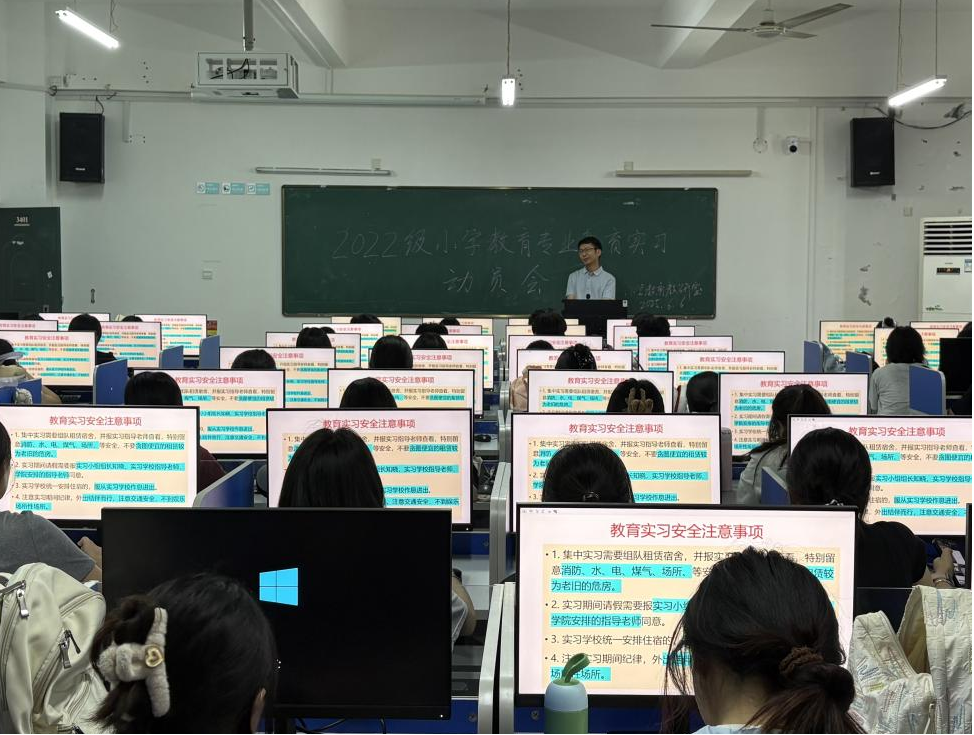为了明确实习目的、实习要求和实习安全等事项,推动教育实习工作平稳有序开展,小学教育教研室于6月6日下午在3401召开教育实习动员与安全会。会议由小学教育教研室主任刘雍江老师主持,全体2022级小学教育专业学生参会。