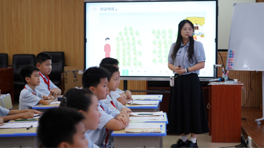 图为桂林学院小学教育专业师范生陈梓珊上展示课