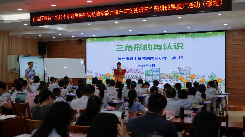 图为桂林市灵川县城关三小徐娟上展示课《三角形的再认识》